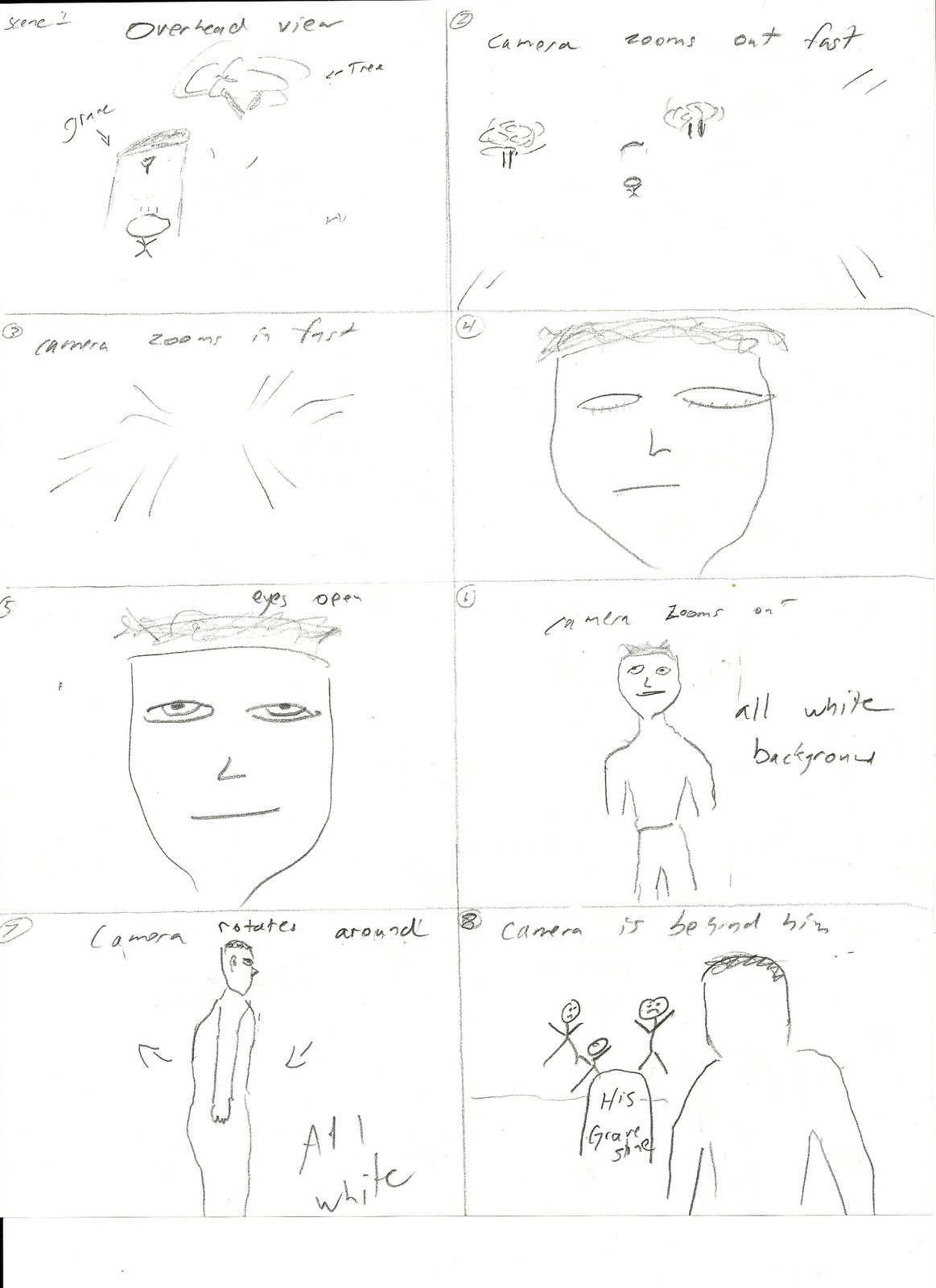 My idea for the final project is influenced by Clint Mansell's song Death is the Road to Awe. I chose this song for my final project because I want to have a heavy theme of dying as a positive thing. My video will represent and have a "death is the beginning" motif to it. I hope to achieve that through 'us' as the audience seeing a person laying a rose on a grave and we watch this from a over head bird's eye view. After the person steps away from the grave, us, or the camera dives into the ground and through it so we come face to face with a person with their eyes closed(the dead person) Then we see the person's eyes open as the music begins to pick up. The camera then spins around the body and the body is actually standing up in a space that is three-dimentional and perfectly white. When the camera dollys around the person we then see that he is looking at his loved ones from behind at the grave site. The camera continues to dolly around and we see the front of the man with a tear coming down his eye. The camera zooms in to the tear and it drop off his face. The camera then pulls back and what was a white space behind him is a outer space- like background that he turns to and looks back one more time to see everyone before disappearing like a shooting star. Then we tilt the camera down fast to the crowd facing the camera, then the camera zooms in toward them and goes black.
